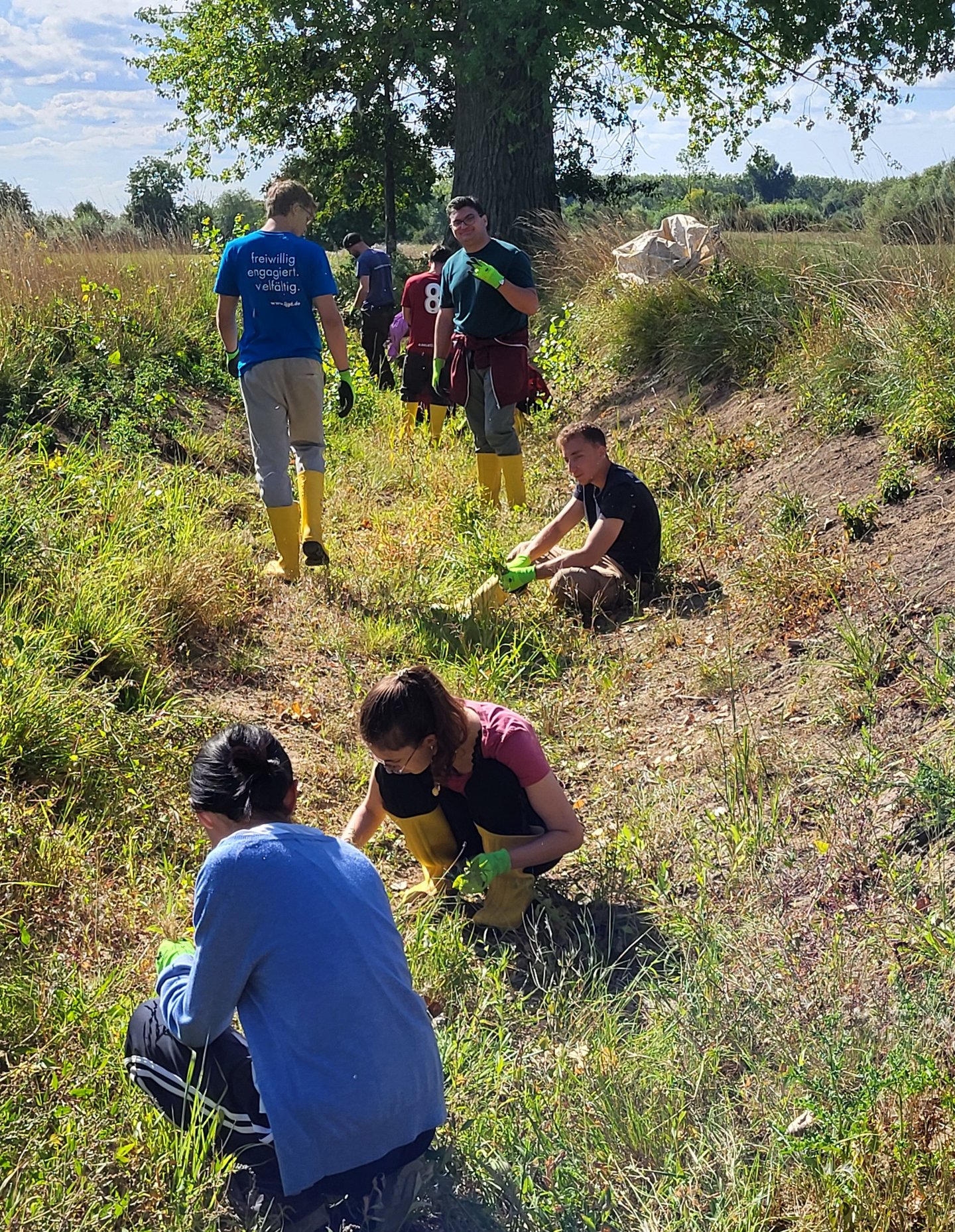 Das Jugendcamp fand im Rahmen eines von der EU und dem Land NRW finanzierten LIFE-Projektes „Wiesenvögel NRW“ statt. Im Zentrum des Jugendcamps standen neben dem sozialen Miteinander die praktische Arbeit in verschiedenen Vogelschutzgebieten und die Vermittlung von Informationen über Natur- und Artenschutz in Nordrhein-Westfalen am Beispiel der Wiesenvögel. Nach einer ersten Arbeitswoche im Kreis Borken bei der Biologischen Station Zwillbrock bezogen die Teilnehmer des Jugendcamps am 23. August für eine weitere Woche ihr neues Quartier in Wiedenbrück, wo sie von Mitarbeitern der Biologischen Stationen Paderborn-Senne, Gütersloh/Bielefeld und der Arbeitsgemeinschaft Biologischer Umweltschutz im Kreis Soest (ABU) empfangen wurden. Von dort aus ging es am Montag zu einem Arbeitseinsatz in die HellinghauserMersch, wo unter der Leitung von Nicolas Nierling von der ABU Jungwuchs von Weiden aus Flachgewässern und einem Graben entfernt wurden. Am Donnerstag wurden ebenfalls Weidenstecklinge aus der Lusebredde entfernt. Mit großem Einsatz wurden händisch und mit Astscheren die Lebensräume der Vögel verbessert .