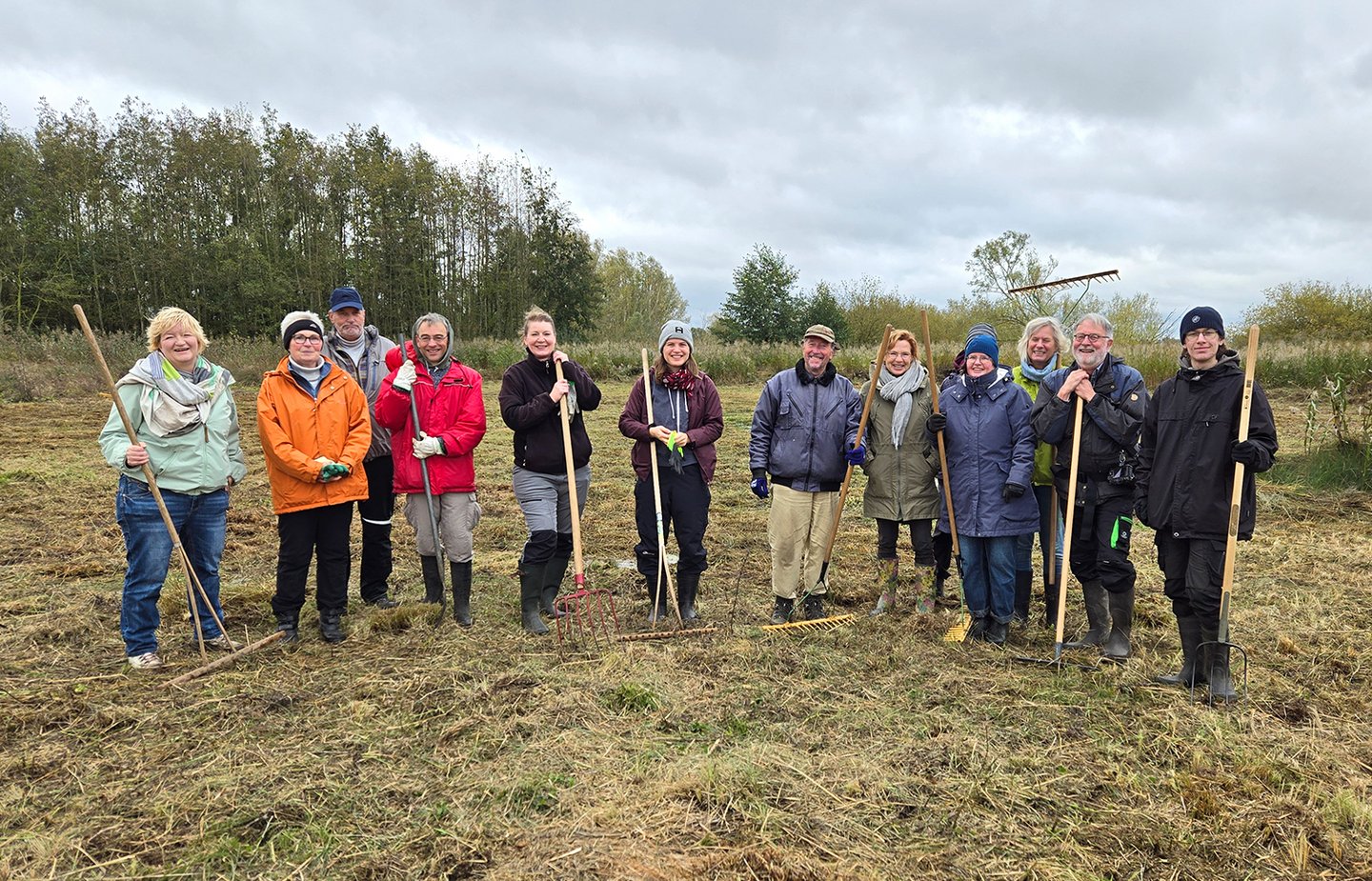 Mit tatkräftiger Unterstützung konnten wir am Mitmachtag einen großen Teil der Fläche mähen und abräumen. Nach einer kurzen Führung im Gebiet folgte die schweißtreibende Arbeit. Die Beteiligten hatten großen Spaß an der Aktion und konnten abschließend zufrieden auf das geschaffte Werk zurückblicken.